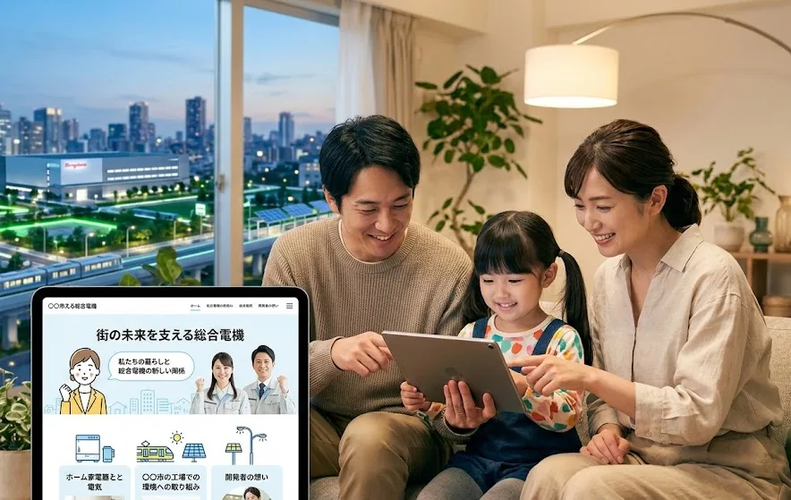 総合電機メーカーが手がける仕事は、日本中や世界中に及ぶ大きなものですが、実はそれぞれの街にある拠点の名前を大切にすることが、信頼を感じてもらうきっかけになります。例えば「〇〇市にある工場での環境への取り組み」や「〇〇駅の近くで使い始められた新しいシステム」といった言葉をサイトの中に含めることで、その土地で暮らす人々に自分たちの活動を知ってもらうきっかけになります。